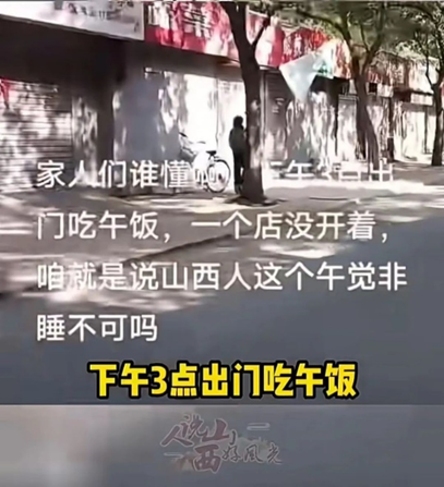 不少外地顾客也有着相同的经历。一网友也发帖分享自己曾去山西游玩的经历:自己下午三点玩累了想吃顿饱饭,但路边是一家开门的馆子都找不着。当时还觉得“不是饭点居然没饭吃?这地方的商家这么“大牌”吗?