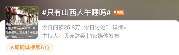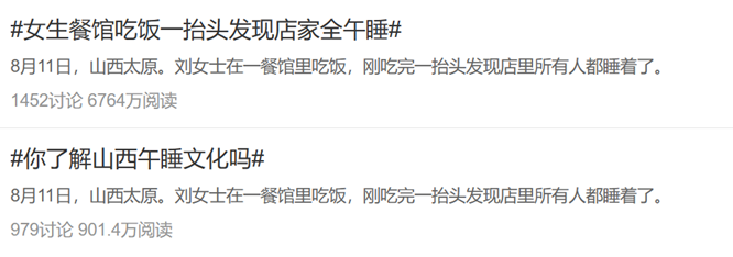 网友们纷纷疑惑,怎么睡午觉还能上热搜?结果,山西的网友们更摸不着头脑:午睡难道不是全国统一?