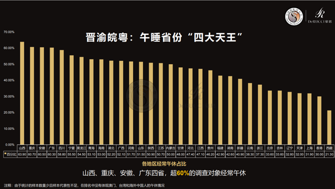 数据更是证明了山西人对午睡的重视。根据“中国睡眠研究会”发布的数据,山西地区的午休占比独占鳌头。