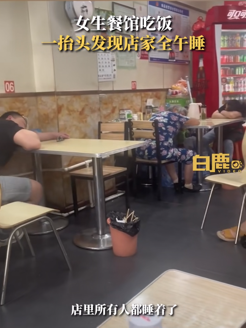 刘女士介绍,当时是下午两三点,自己到了一家包子铺吃饭,店里就她一个客人,刚吃完一抬头就看到店里所有人都睡着了。“想到我们山西人有午睡的习惯,就感觉很有意思”,她便拍摄下了这段场景。