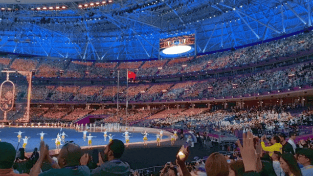 当水墨杭州与现代技术呈现美轮美奂之景时;当五星红旗入场万人齐唱《我爱你,中国》时;当中国亚运会代表团入场,全场高声欢呼时;当“数字火炬手”点燃杭州亚运会圣火时......