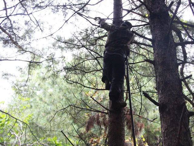 因为野生红松是国家一级濒危物种,攀爬、采摘都必须非常小心,不能破坏枝头。