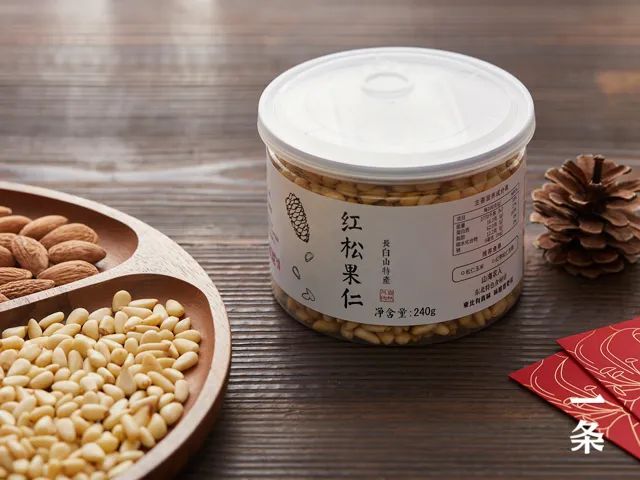 “山海农人”的红松子仁,采摘自长白山原始老林里的红松树,树龄要更大、结出的松子也更饱满。