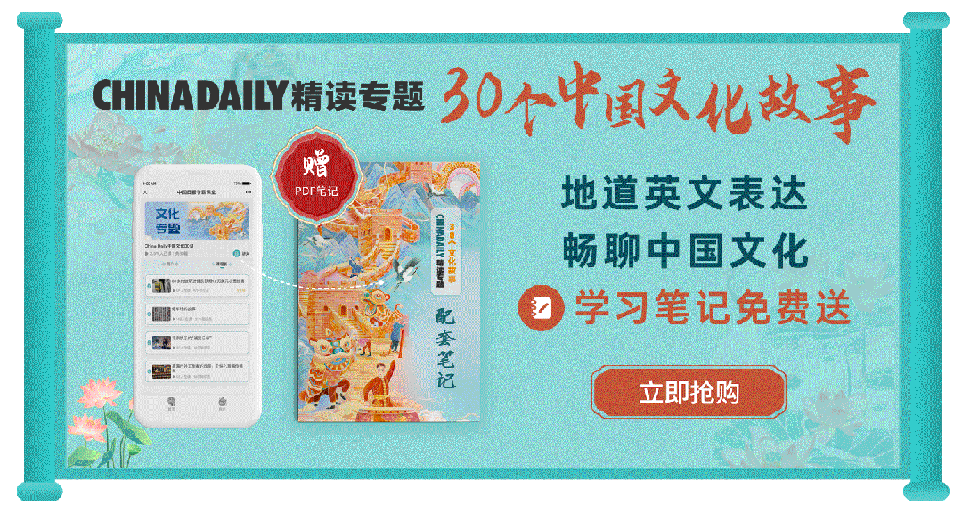 我们精选了30篇China Daily对中国美食、美景、节日、传统文化等话题的英文报道,精心制作成文化类精读课程《China Daily精读专题丨30个中国文化故事》,带你穿越千年时光,跨越辽阔疆土,共同追寻漫漫历史长河里的中国故事。