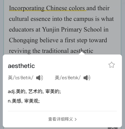 加入单词本:遇到陌生的单词,可以点击星号一键加入生词本。想复习生词,点击左上角的菜单栏,进入我的生词本。