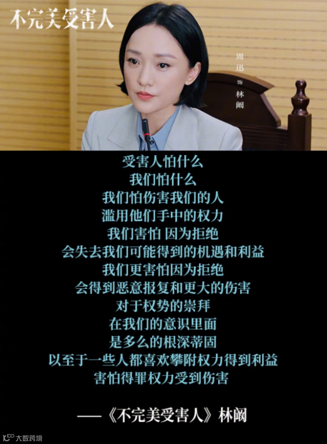 上周,一部展现性侵害(sexual assault)、家暴(domestic violence)等社会法治类主题的29集电视剧《不完美受害人》(Imperfect Victim)收官。