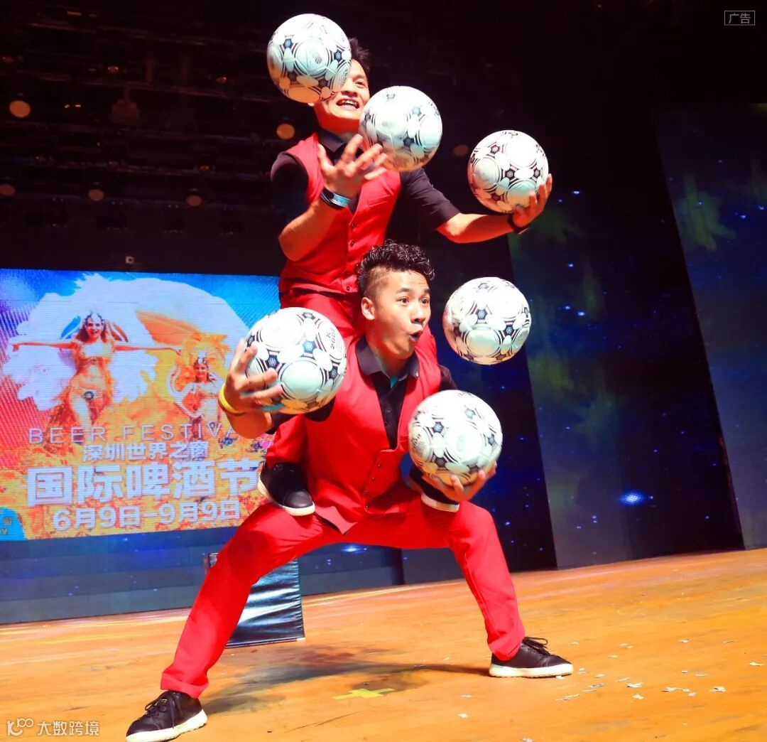 拉风组合的拿手绝活之一杂耍抛接球,用的可是足球,高度、速度随心所欲。再加上华丽丽的运球技巧,狂拽酷炫!