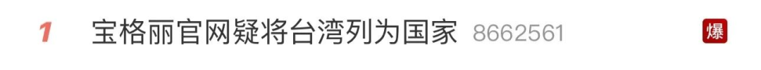 随后,“宝格丽”“宝格丽官网疑将台湾列为国家”等词条相继登上微博热搜第一。
