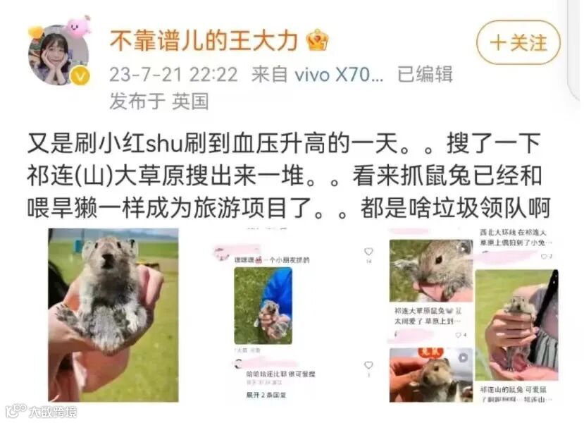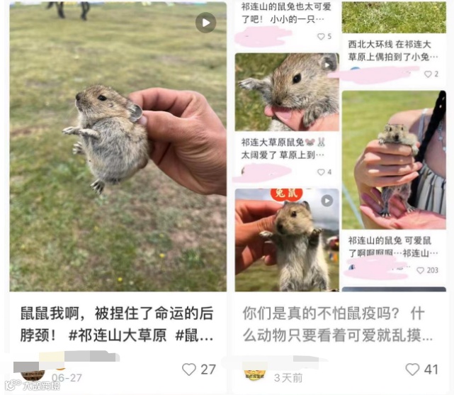 在相关平台的网帖中,记者看到,有游客称自己在祁连大草原抓到鼠兔了。还有人表示:鼠兔很可爱,为什么不能抓鼠兔?