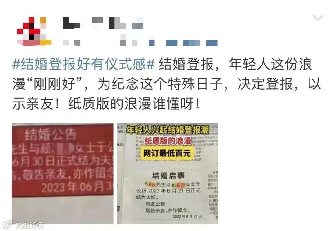 她补充说:“这种方式除了带有一种复古的浪漫感,满足了我们公开自己重大生活事件的心理需求,还可以避免引起太多关注。”