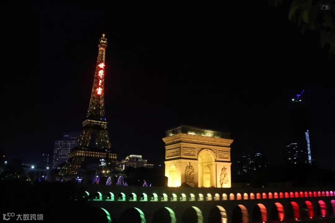 夜景灯光秀,各大微缩景观灯火闪烁,犹如被吹落的万点流星。舒缓的音乐在夜里流淌,与流转的月光在人群之中互相交错。