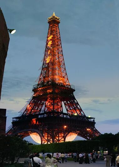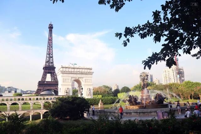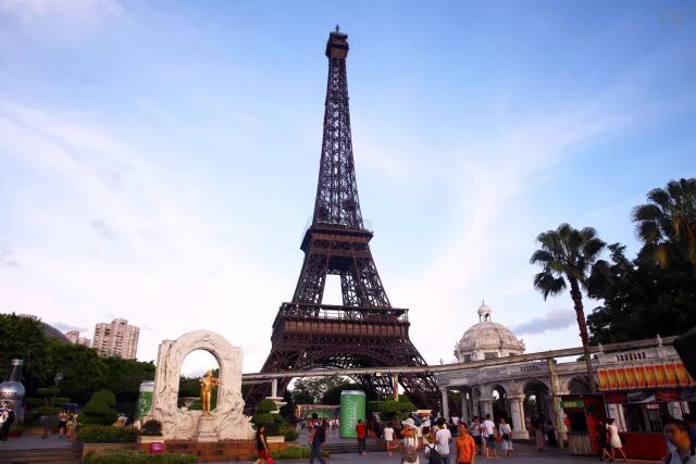 深圳世界之窗埃菲尔铁塔,采用原版设计,比例为1:3,高度约108米,是世界之窗的标志性景点之一。