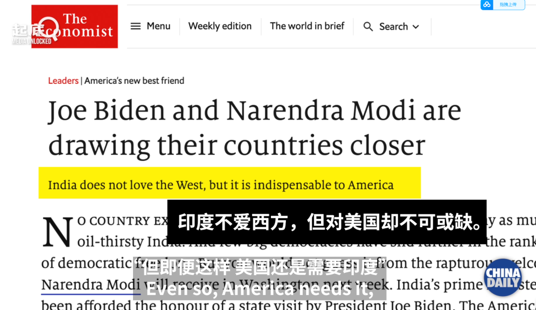 西方并没有太多原则,唯一的原则就是对抗中国。拜登政府对印度的人权问题和乌克兰危机闭口不谈,反而对莫迪大肆奉承。