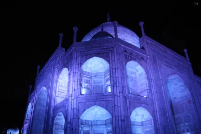 泰姬陵由殿堂、钟楼、尖塔、水池等构成