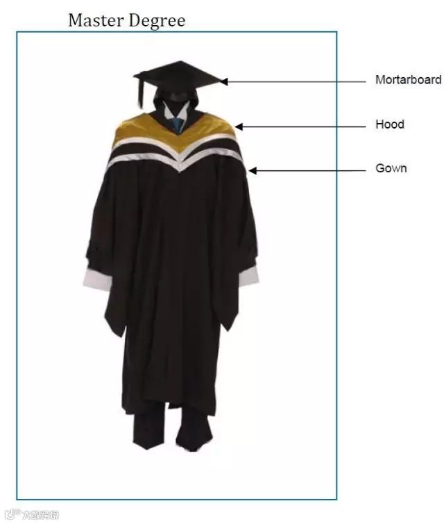 学位服一般被称为cap and gown,即学位帽和学位袍。