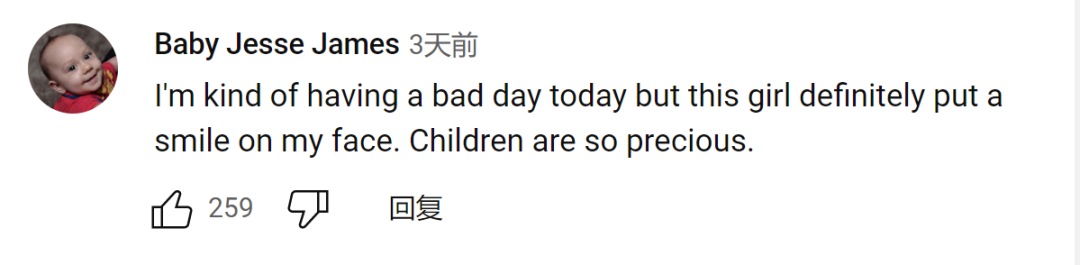 我今天心情不太好,但是这个小女孩让我脸上又有了笑容。孩子真的是无价之宝。