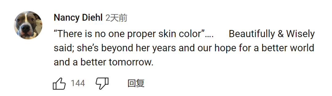 “不是只有一种美的肤色。” 说得多棒多有智慧啊!她有着超越年龄的智慧。