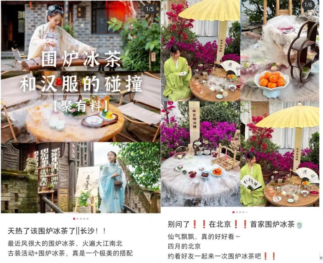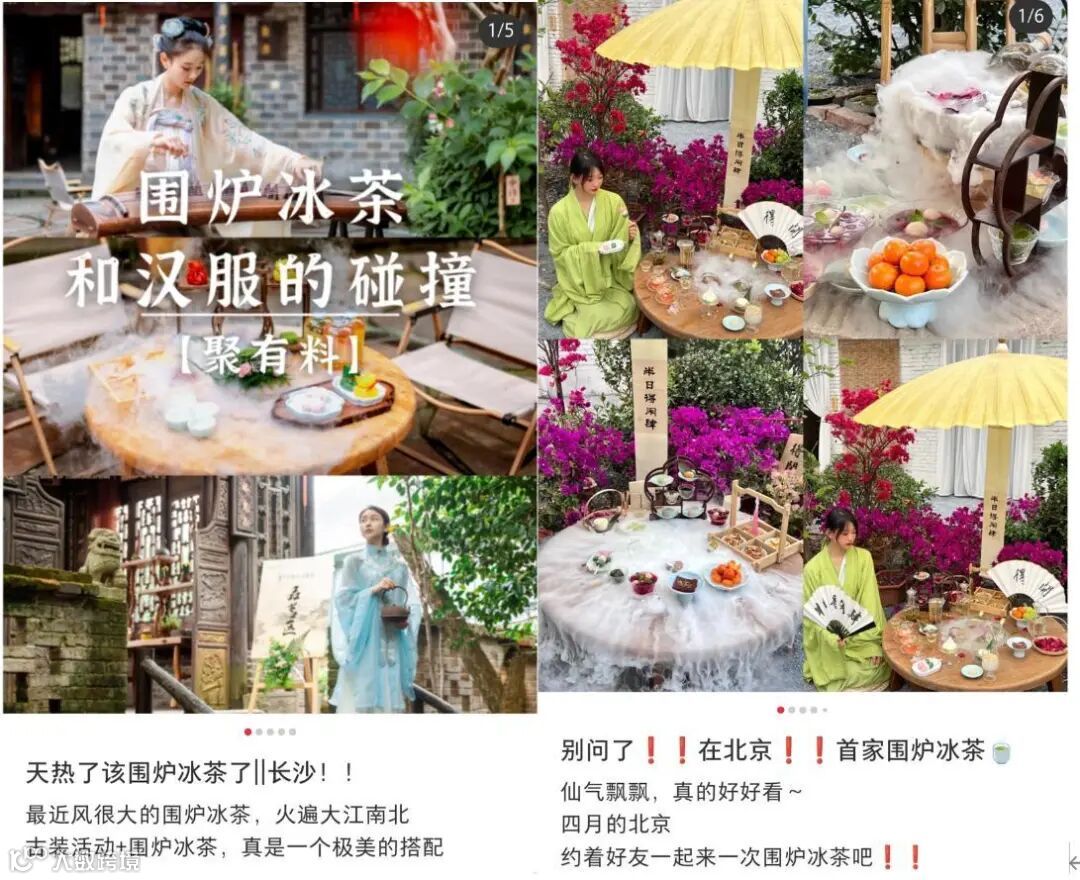 还有网友认为,“围炉冰茶”是传统茶文化的新表现。有些店家甚至“复刻”了一些经典影视剧和古典名著中曾经被提及的点心和饮茶仪式,更是有网友特意穿汉服打卡。