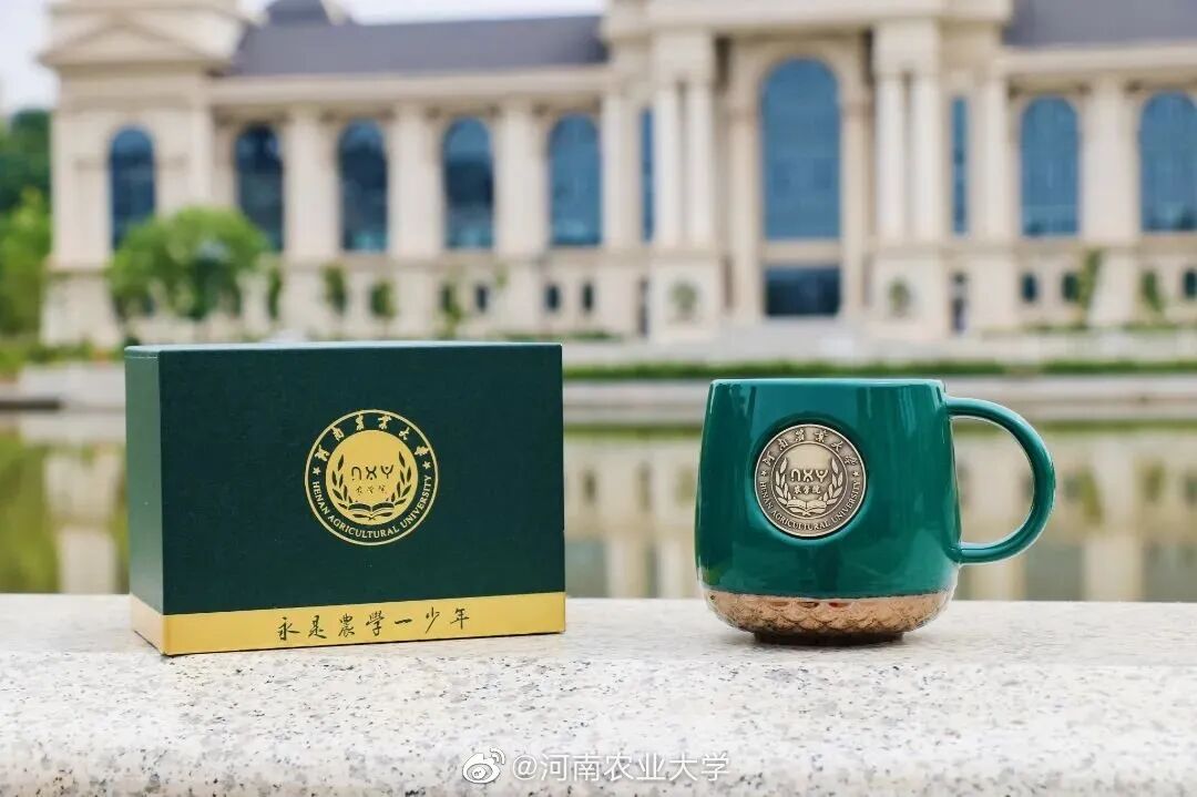 河南农业大学农学院为每一位毕业生准备了定制茶杯,配以“农大绿”的标志性颜色,刻印“永是农学一少年”的寄语。