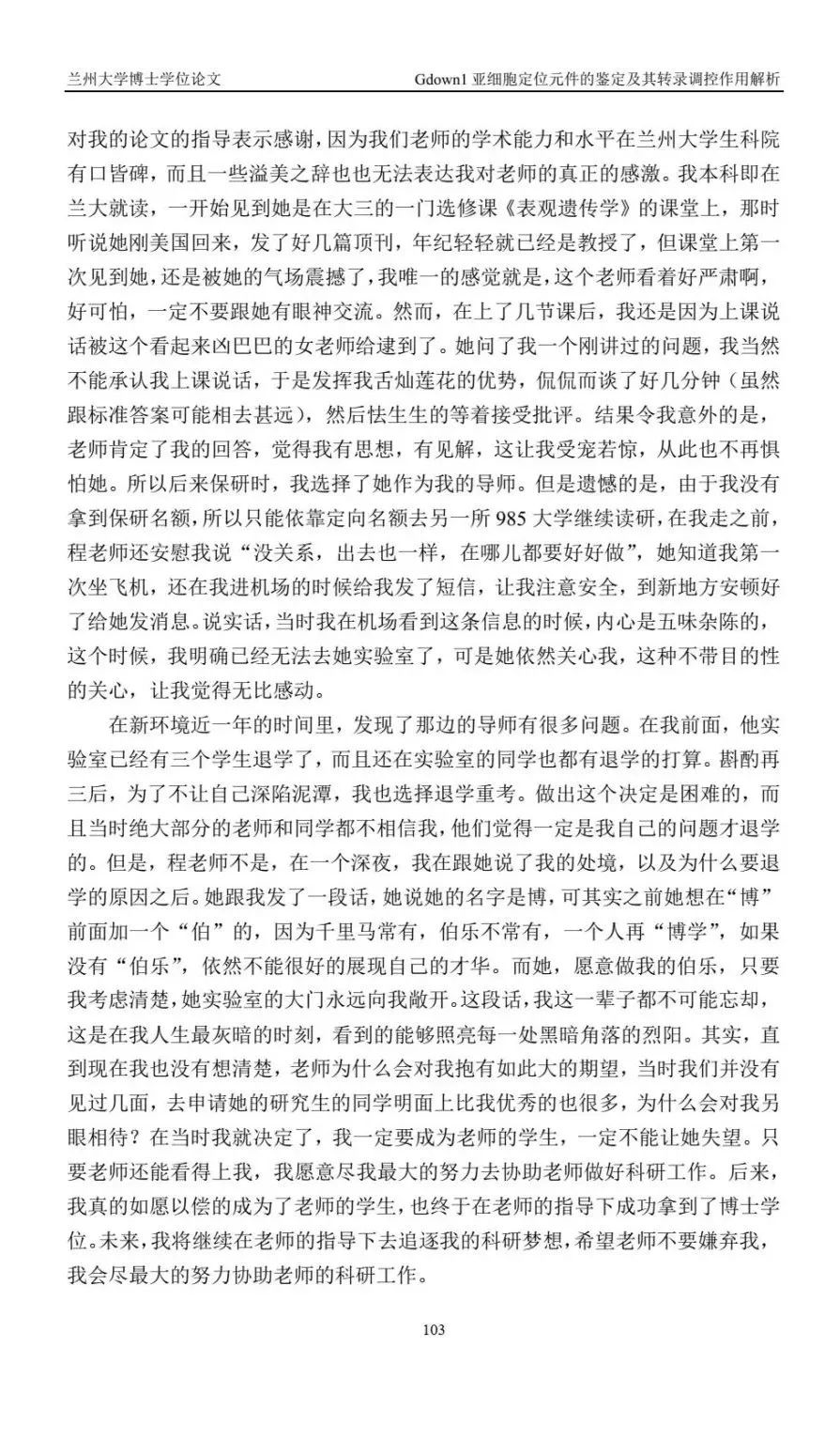 “整整 23 年的求学生涯……和我接触时间最长也是最让我没齿难忘的,还是我硕士及博士的导师程博教授……在新环境近一年的时间里,发现了那边的导师有很多问题……斟酌再三后,为了不让自己深陷泥潭,我也选择退学重考……程老师说她愿意做我的伯乐,只要我考虑清楚,她实验室的大门永远向我敞开。”