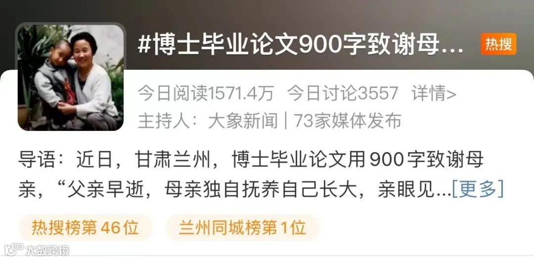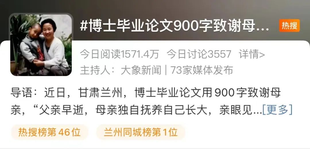 近日,#博士毕业论文900字致谢母亲#的话题冲上热搜。