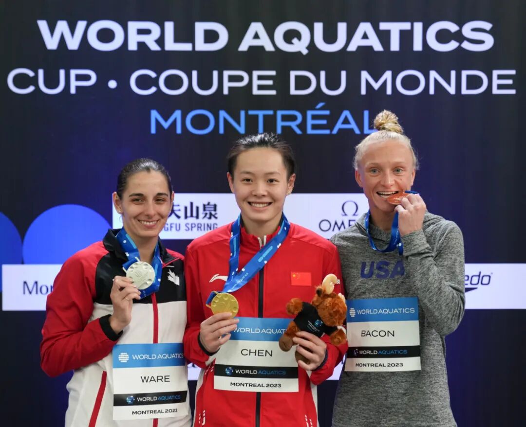 In the women's 3m springboard, Chen Yiwen of China finished first with a cumulative score of 404.70, followed by Canadian Pamela Ware with 365.40 and American Sarah Bacon with 357.85.