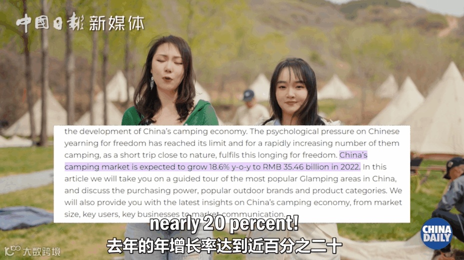 So in the last two or three years, the Chinese camping industry enjoyed explosive growth. Last year, the growth rate reached nearly 20 percent! You can feel people's urge to get close to nature.