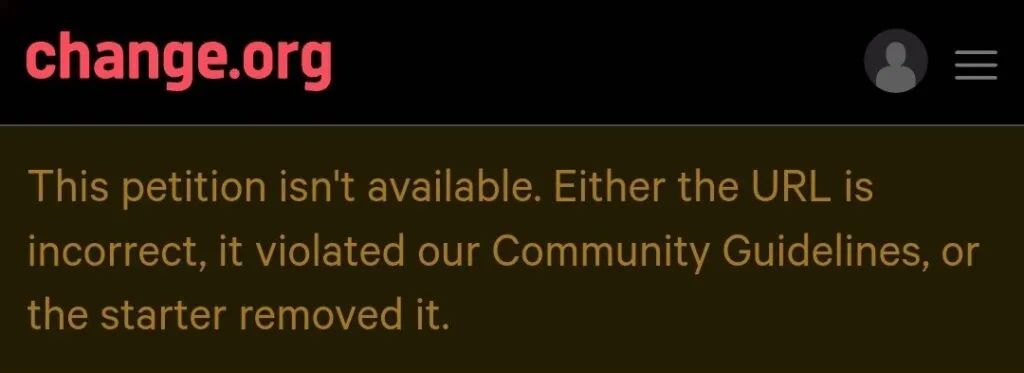 Over 85,000 people signed an online petition in just two days, however, it has since been removed from the platform without explanation.