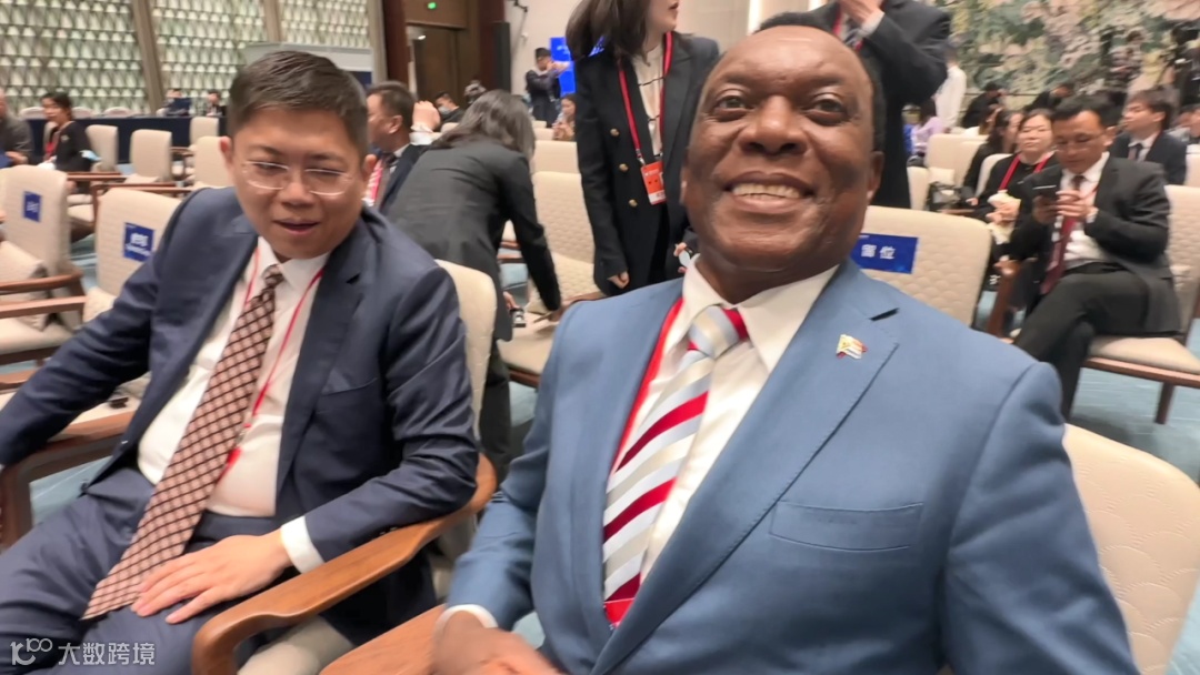 论坛上,一对老友相聊甚欢。小彭上前询问得知,原来这是南非驻华大使谢胜文(Siyabonga C, Cwele)和他的中国老友再次见面。