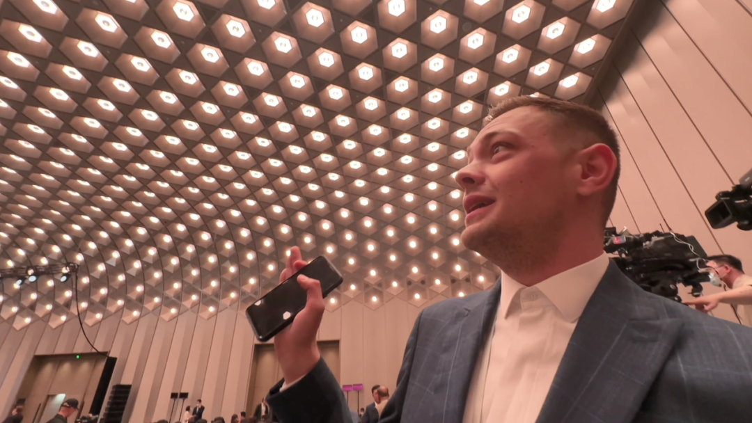 小彭进去镜头一扫,还真热闹,已经有不少中外与会者抵达啦。一抬头,众多顶灯闪耀像繁星,来自波斯尼亚和黑塞哥维那解放报的记者奥尼尔·泽茨(Omer Zec)好奇地告诉小彭,这些灯好像modern star(现代之星)啊。联想到论坛主题,这个小哥的比喻就有了双关的意味。