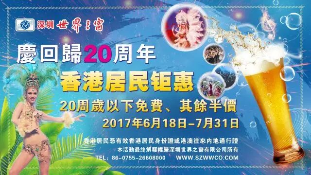 2017年7月1日,香港回归20周年。深圳世界之窗推出“香港居民钜惠”活动: