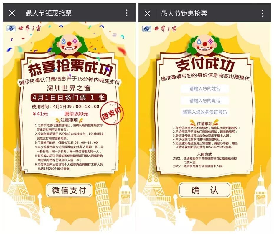 五、抢票成功后,请点击“微信支付”按钮并在15分钟内完成付款;支付成功后请填写姓名、电话以及身份证号码。