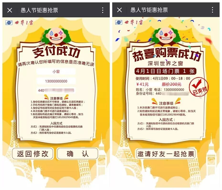 三、支付成功后请填写正确的个人信息(姓名、电话、身份证号码)以确保您顺利入园。个人信息提交后不可修改,请确认无误后再提交。