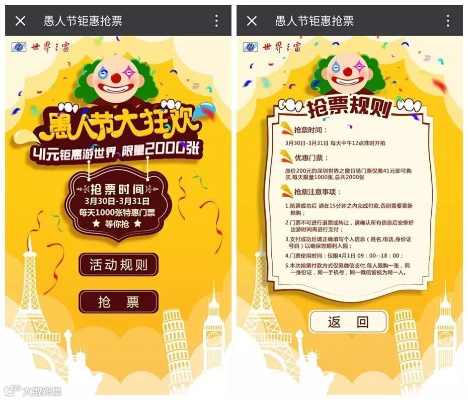 活动奖品:深圳世界之窗4月1日日场门票1张,每天限量1000张,共2000张
