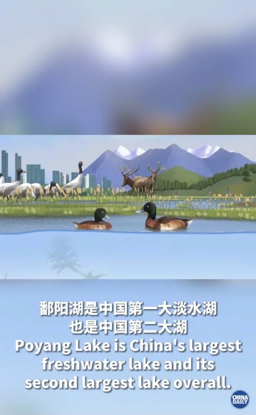 鄱阳湖是中国第一大淡水湖也是中国第二大湖。这里的环境和气候条件均适合候鸟越冬,是白鹤等珍稀水禽及森林鸟类的重要栖息地和越冬地。