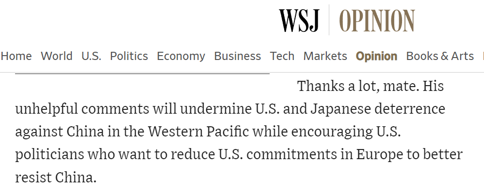 美国和部分欧洲利益集团在担心什么?《华尔街日报》无意间透露出了答案:一是法国总统此举将削弱美国和日本在太平洋地区对中国的威慑;二是加深美国内部分裂,鼓励了一些不支持斥资捆绑欧洲的美国政客。