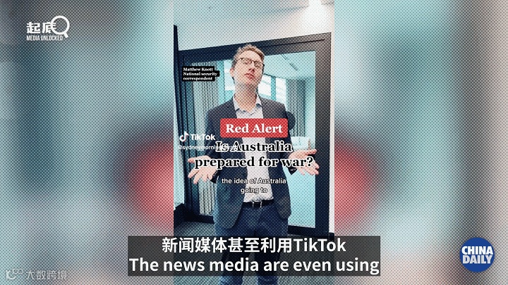 《悉尼先驱晨报》还借助TikTok这样的社交媒体来扩大战争宣传。TikTok刚在美国听证会上被批斗成“中国的间谍软件”转身就被澳媒拿作了反华宣传工具。