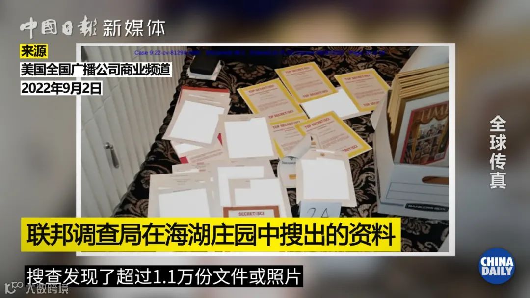 2022年8月8日,美国联邦调查局对特朗普的海湖庄园进行了搜查。搜查发现了超过1.1万份文件或照片,其中18份为最高级别的“绝密”。司法部表示许多高度机密的文件可能已经被隐藏和转移。