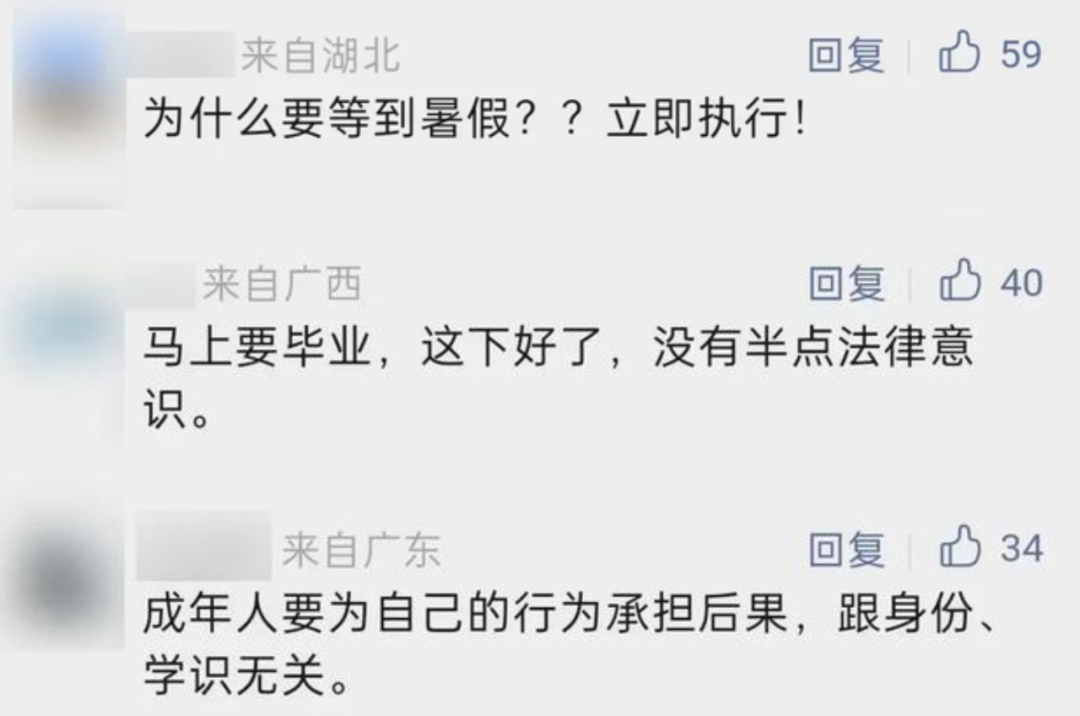 In March, the author was informed by the police that Zhao would be given a 10-day detention for suspected dissemination of obscene materials, but that the punishment would be applied during the upcoming summer vacation. This would have been after his graduation had he not been expelled, according to the author, a fact that has not been well-received by many commenters online.
