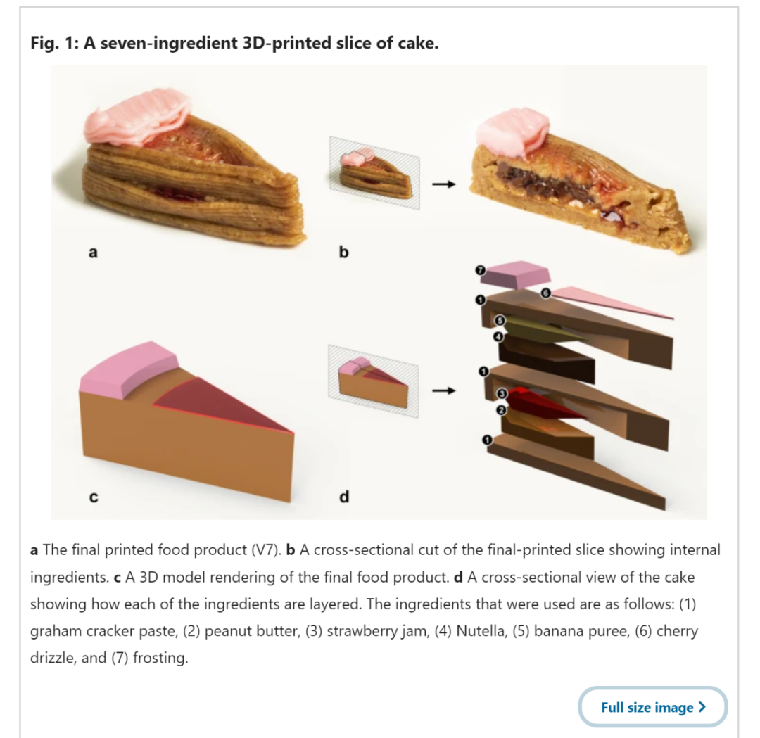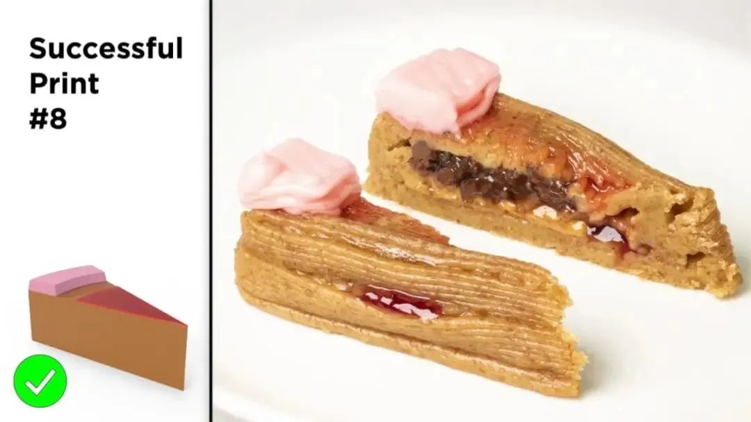 Until now, most 3D-printed foods have been made with uncooked ingredients, the researchers say. But in research published Tuesday in the journal npj Science of Food, the engineers describe how their 3D printer made a cheesecake from seven ingredients: graham cracker, peanut butter, Nutella, banana puree, strawberry jam, cherry drizzle, and frosting.