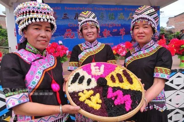 Every ethnic group in Guangxi makes the five-color glutinous rice on March 3, Qingming Festival, April 8, Dragon Boat Festival and other folk traditional festivals in the lunar calendar. It caters for people attending the Folk Song Fair, or is used as one of the sacrifices to ancestors and gods.