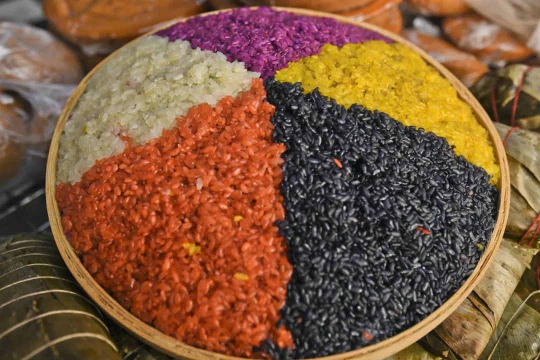 On the one hand, it is regarded as good luck as well as a symbol of fruitful harvest of the crops of the year; on the other hand, the rice is colorful, bright and attractive with unique fragrance and flavor. It is made of natural pigment, which is good for our health. Colorful, fragrant and tasteful, how delicious it is!
