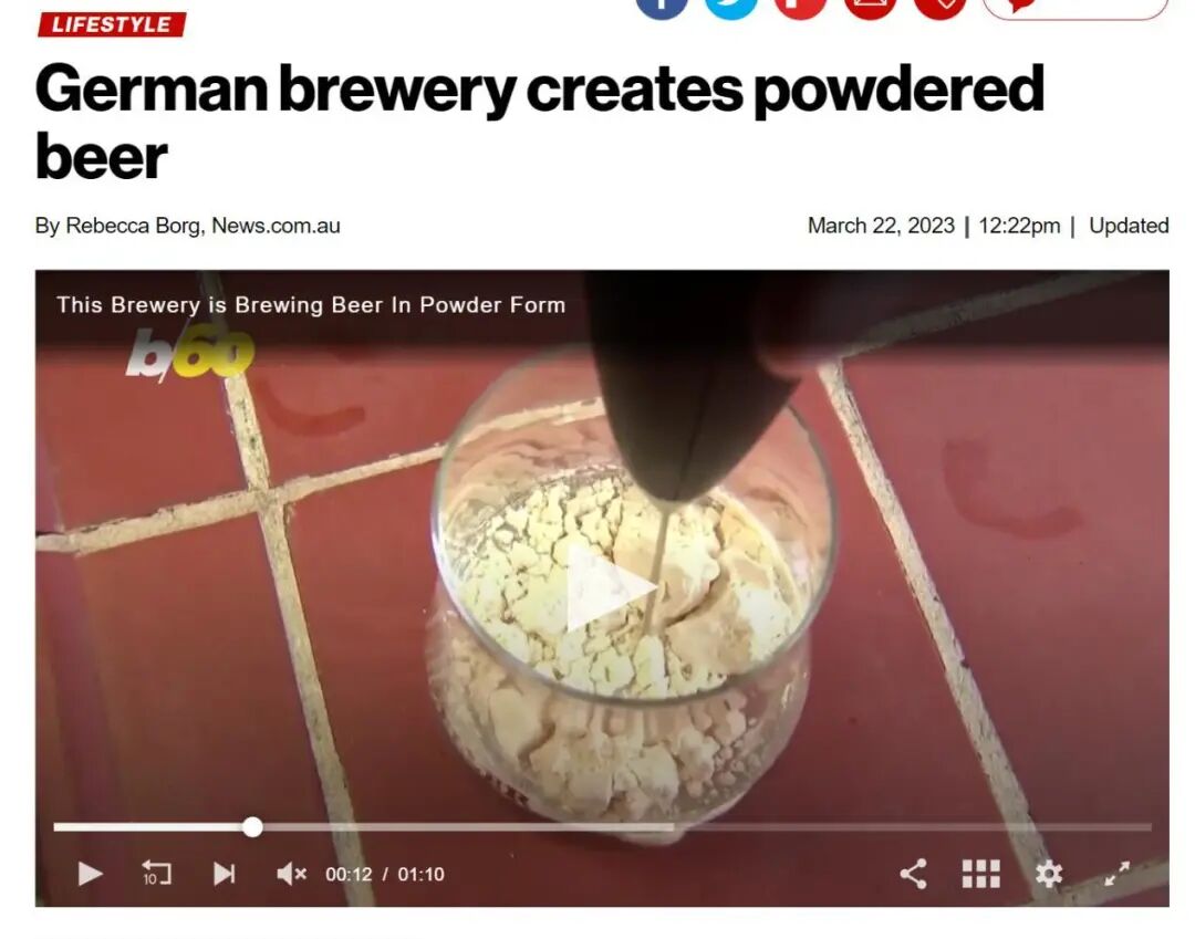 "It's the world's first complete beer in powdered form and it could change the world," Stefan Fritsche, the brewery's managing director, told The Times.