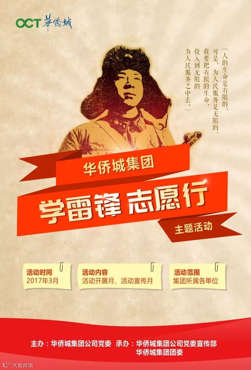 华侨城集团各单位响应集团党委号召,积极开展“学雷锋,志愿行”主题月活动。为弘扬雷锋精神,践行央企社会责任,响应国资委文明办号召开展的“责任央企 志愿先行”中央企业学雷锋志愿服务主题活动。