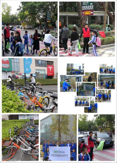 酒店置业、香港华侨城、创意文化酒店公司党团员和志愿团体同时关注到租赁共享单车随意停放这个城市痛点。各单位分别在华侨城城区、欢乐海岸、华寓、荣超滨海大厦和宝安区图书馆等公共场所,整理分类摆放数百辆单车,还城市良好秩序。