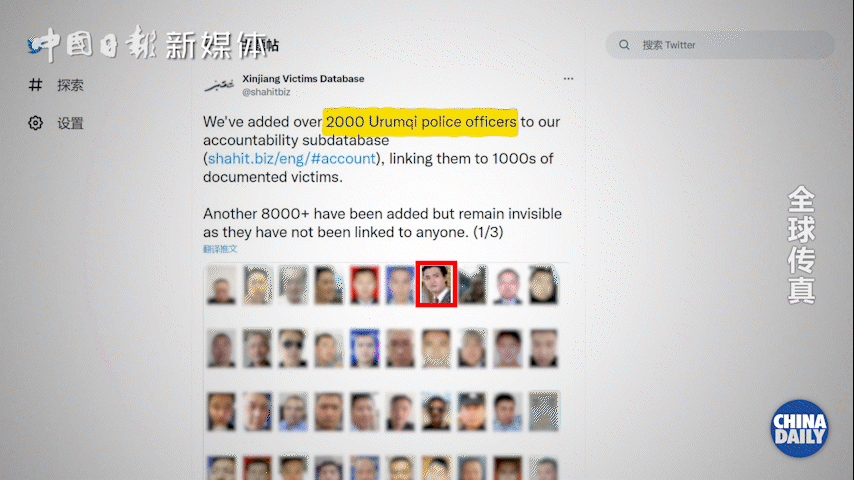 在2023年1月6日,一个Twitter账号发布了一份所谓“新疆警察名单”,声称要对这些“警察”问责。然而在这个所谓的数据库中竟然出现了演员刘德华和周润发的照片。