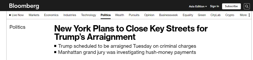 另据彭博社2日消息,一位知情人士透露,作为安全措施,美国纽约市官员计划,前总统特朗普被提审期间,关闭该市曼哈顿下城的主要街道。