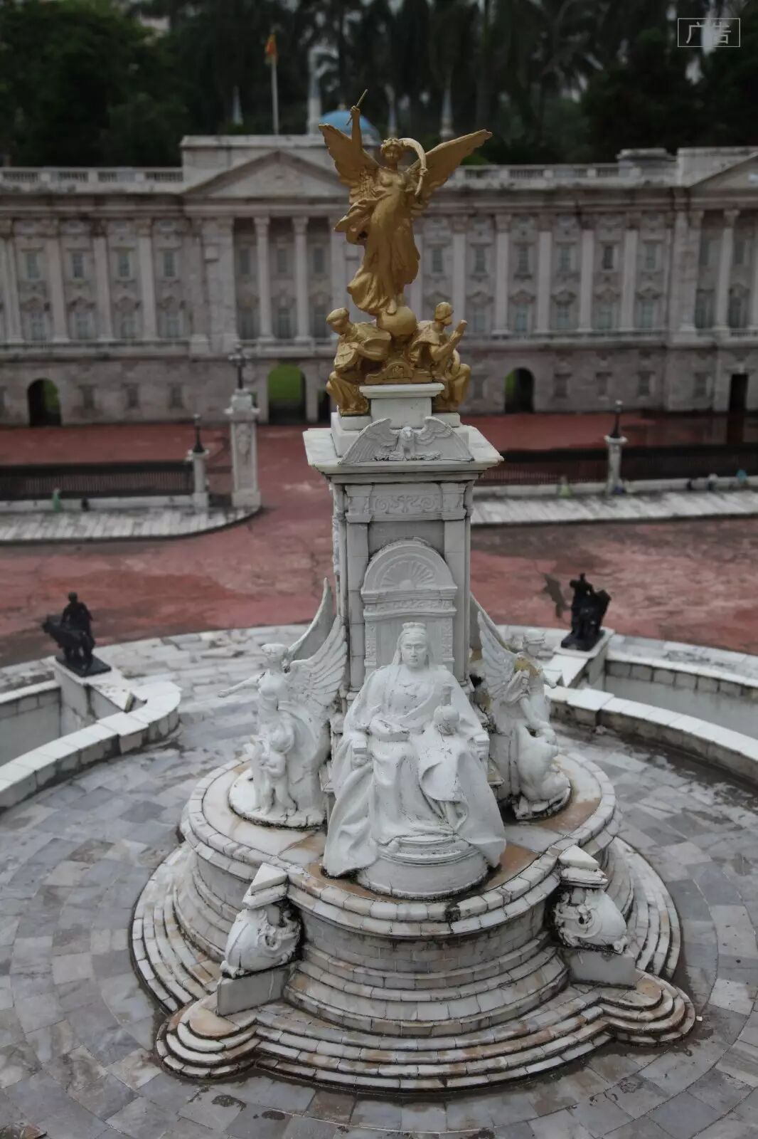 宫前广场上竖有胜利女神金像和维多利亚女王坐像,展翅欲飞的胜利女神,代表希望能再创造维多利亚时代的光辉。