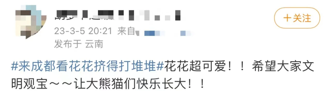 这一挡,为花花吸引到了上百万粉丝。花花也很会营业,经常积极配合游客拍照,对着人群打招呼摆姿势。每天都有很多游客从全国各地赶来,只为见上它一面,甚至还有游客爬上了树。保安无奈喊话:你们对它的爱太多了!快从树上下来!