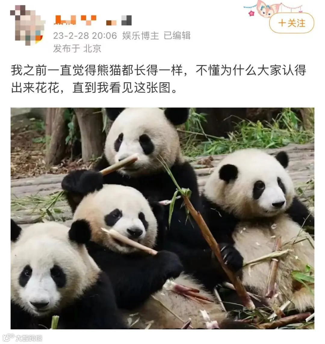 谈及花花的走红,侯蓉表示:关心大熊猫、喜爱大熊猫的人越来越多,通过大熊猫关注到濒危野生动物保护和生态文明建设,这是好事。